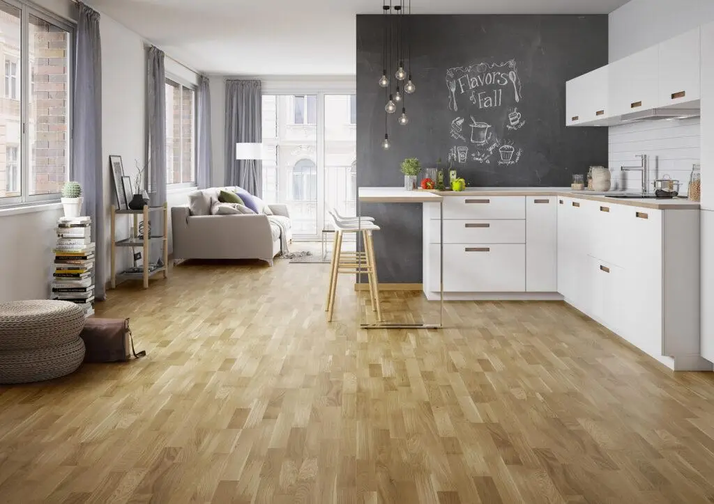 Parkett im Schiffsboden-Look eignet sich ideal für verschiedene Bereiche im Haus, besonders für kleinere Räume, da die unterschiedlichen Segmente auf begrenzter Fläche Abwechslung und Dynamik bieten.